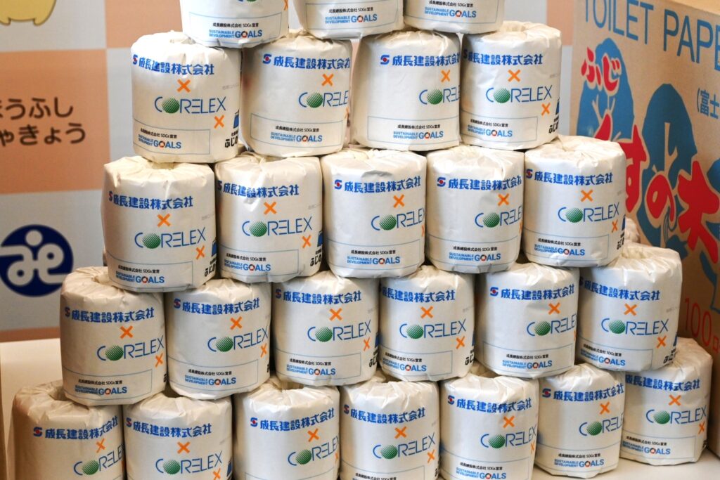 今回寄贈したトイレットペーパーは、当社で発生した古紙を原料として再生されたもので、SDGsの目標にもつながる取り組みです。